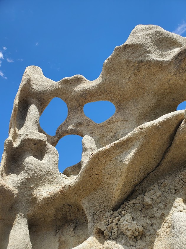 A small, relatively untraveled, roadside attraction, miniature Fantasy Canyon contains some of the most unusual geologic features in the world. Here, 3 types of rocks (mudstone, claystone, and sandstone) eroded at different paces, creating wild formations that rise from the barren badland topography like a sci-fi city.