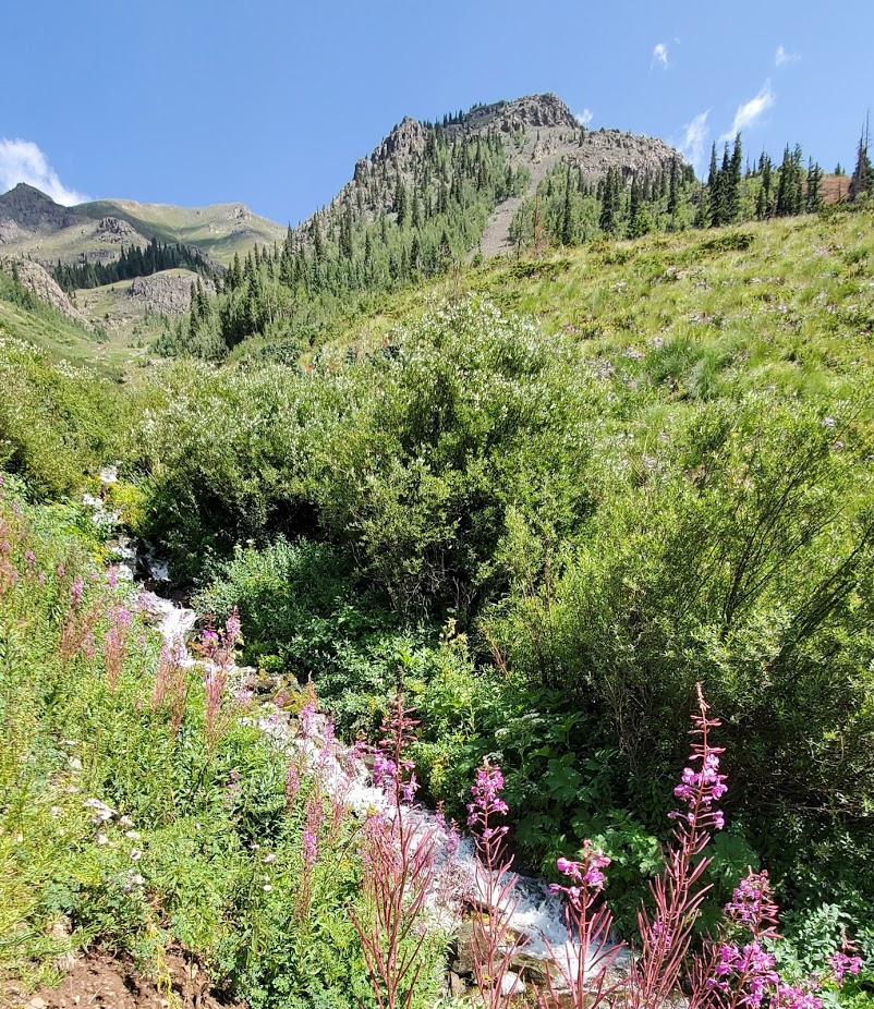 Getting there: US-550 S to Silverton, left on Co Rd 2305 ft, left on Greene St and right in CO Rd 2. The trailhead is 0.2mi before the bridge that crosses the Animas. The parking area is on the south side of the road, and the trail begins as two tracks that lead up a grassy hill. Soon it turns into single track and up and away you go. (There are trails beyond the lake to some mine shafts if you wish to explore further.)