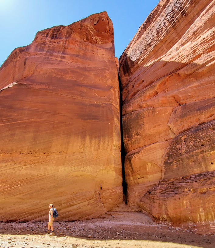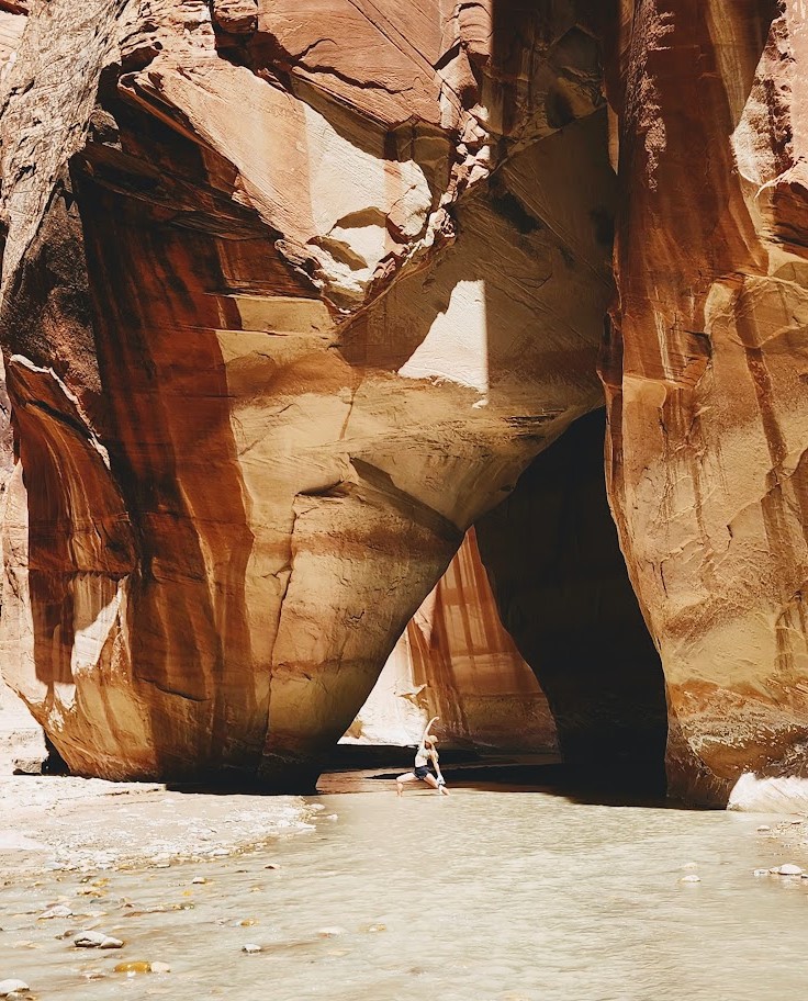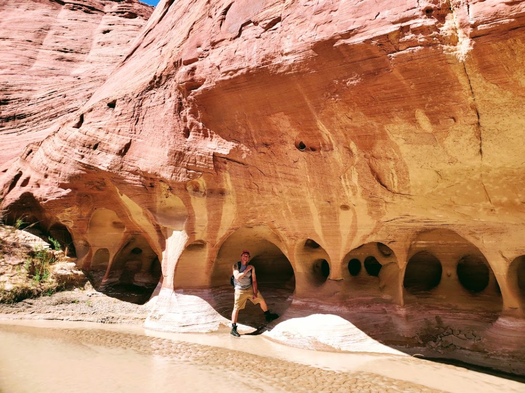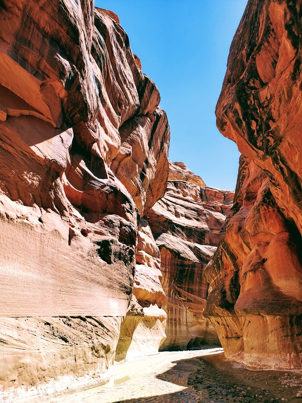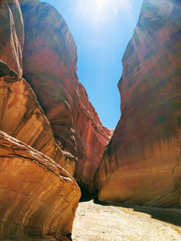 Truth is advertising, you will encounter sand, mud, quicksand, and little to no shade (until you reach the slot canyon ~5+ miles). If you’re prepared for those caveats, you’ll likely find it quite pleasant to meander up the at-times dry, muddy, wet riverbed as you take in the play of light and shadows on the colossal canyon walls and wonder at the strange sandstone formations. Unless there’s been a recent heavy rain, the water won’t reach your ankles so either tevas or an old pair of running shoes that you don’t mind getting wet will work best.