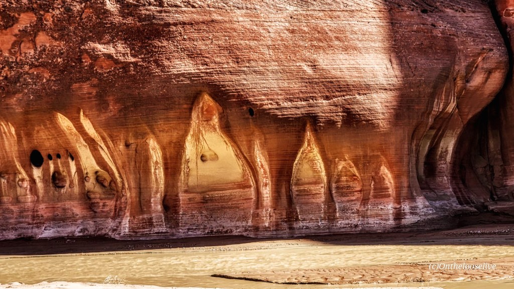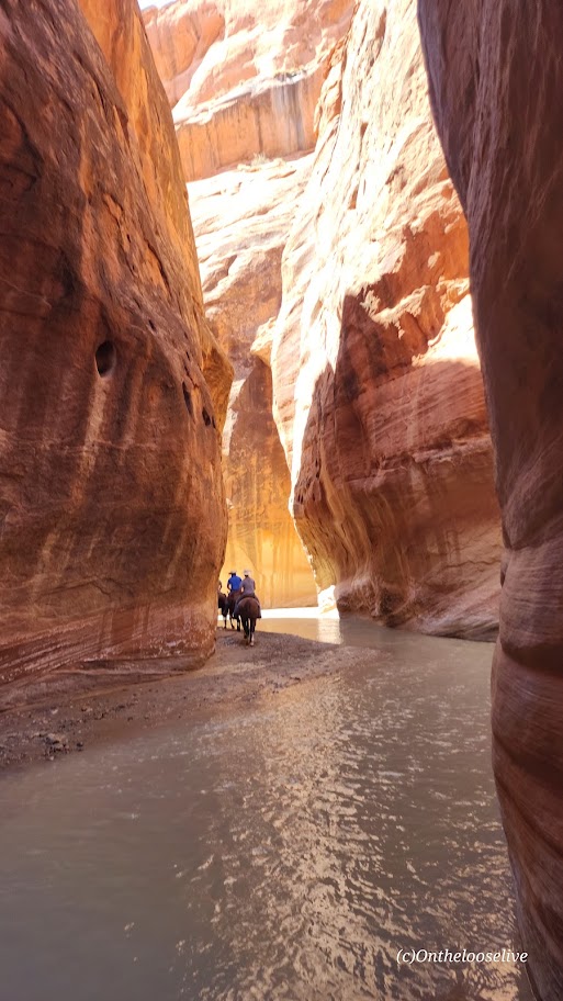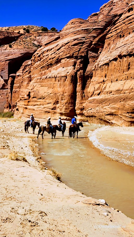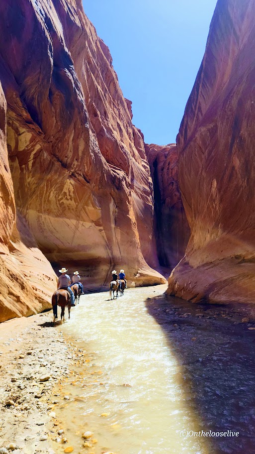 Imagine a walk “on the beach” surrounded by colossal slot canyon walls, the play of shadows and light on their vermillion faces, cool water on your feet, and top it all off with cowboys🤠 on horses 🐎for quintessential Wild West photo ops.This is as close as it comes to a”walk on the beach” hike in Utah. You can stroll up the river any distance your heart desires, or you can make it an overnighter, or a multiday adventure to/from Lee’s Ferry 38 miles away.