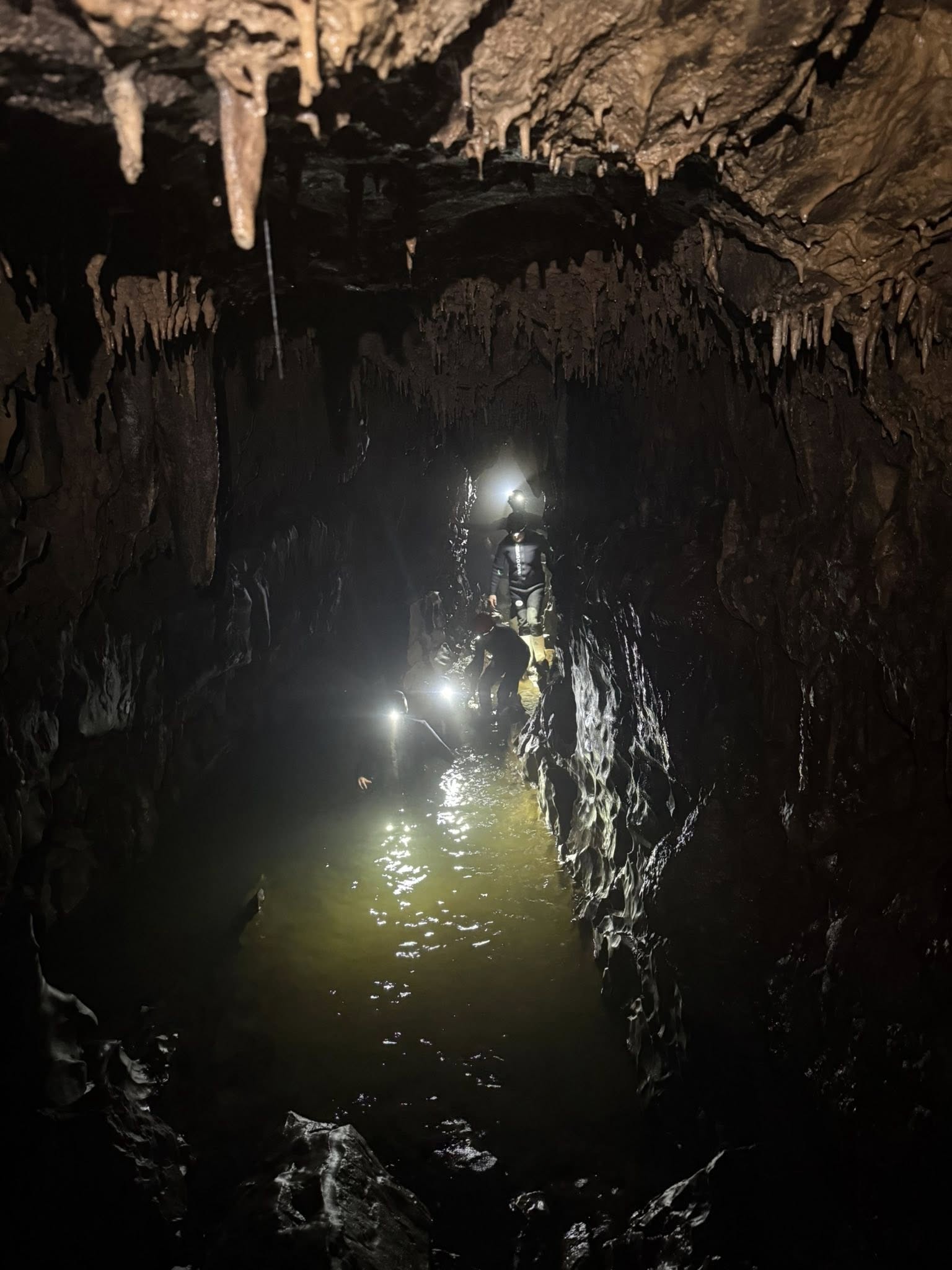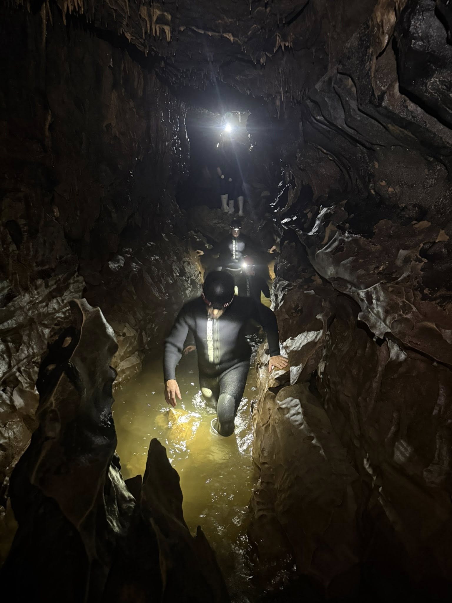 If you’re slightly claustrophobic like me, adding water to the equation amplifies it…as do the low ceilings and narrow tunnels. Of course, learning that you’ll be underground for over 3 hours and knowing that you can’t simply, easily, and quickly exit also contributes to that constricting feeling…Not to mention the heavy wetsuit weighing you down…