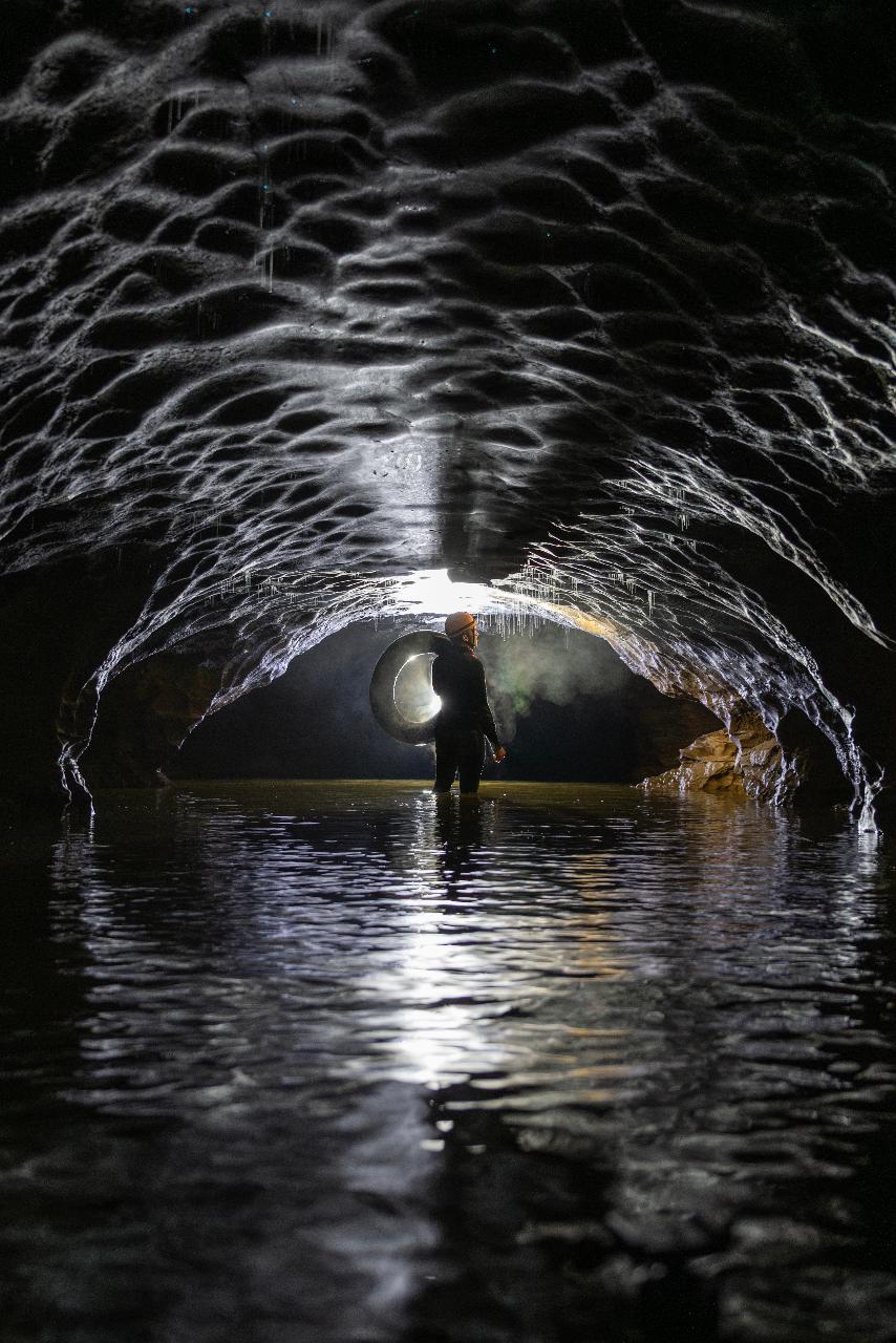 Later, we’d enter a canyon with deep water where inner tubes were waiting for us for a cruise down glow worm alley. It was magical and mesmerizing. The once chatty group fell silent in awe.