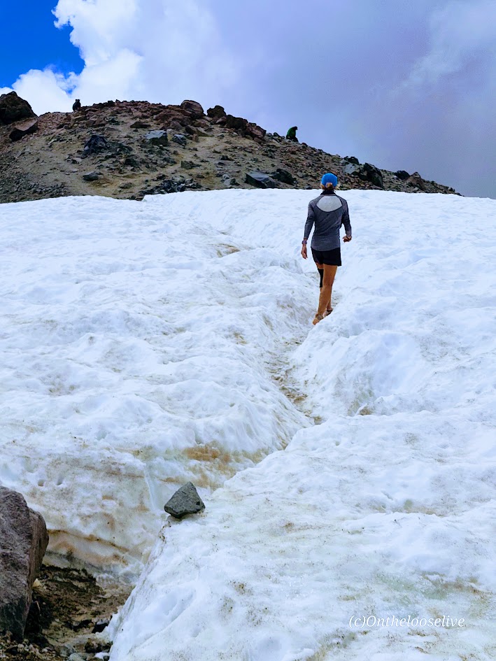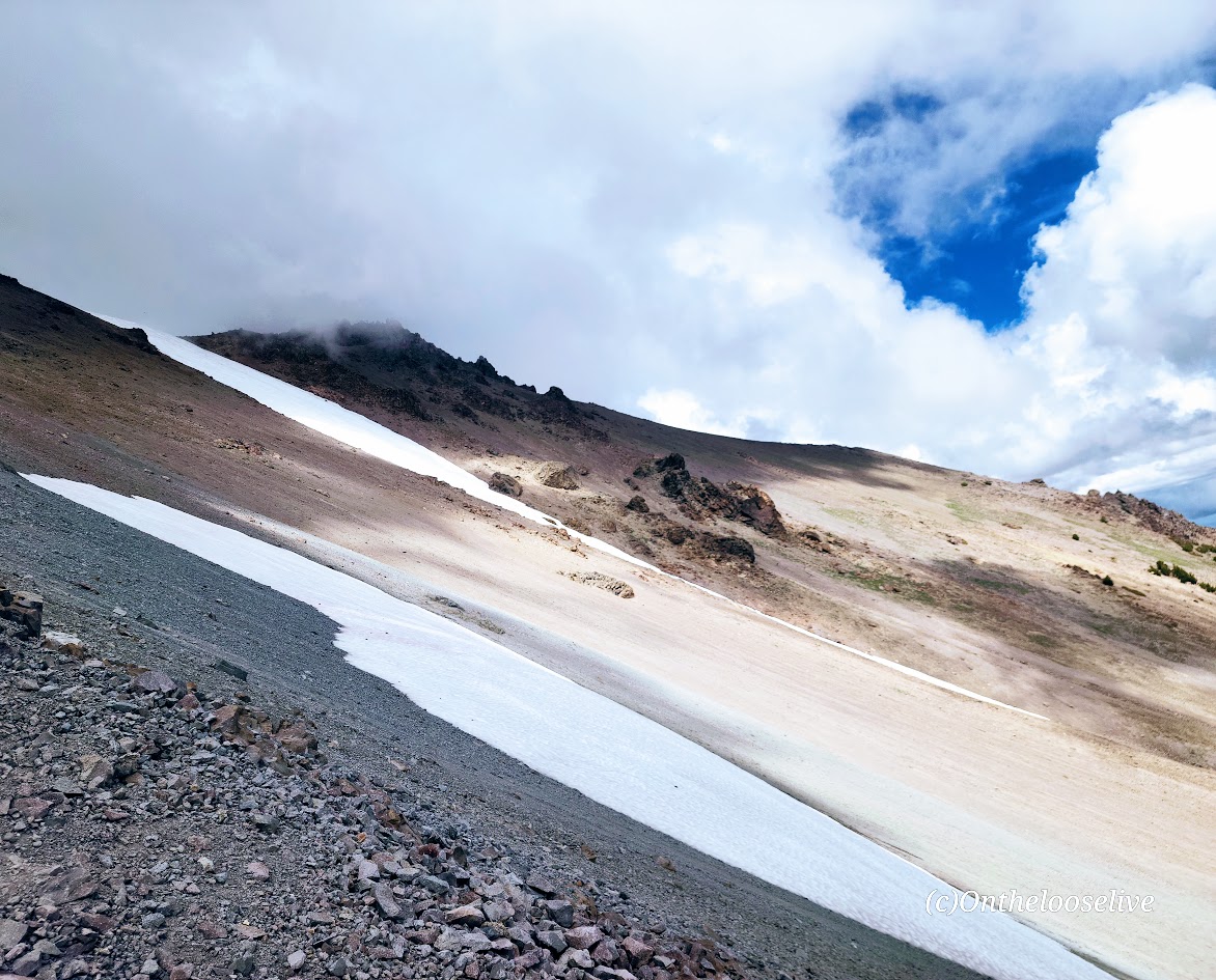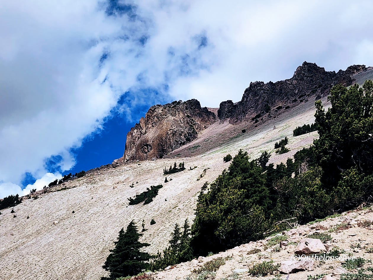 When it’s your last day in LVNP, and you haven’t “bagged” Lassen Peak yet, you make a run for it. And so we did. Actually, it was more of a fast walk than a trot, but a steady pace to try and outpace a looming monsoon. Mission accomplished. This was a fun hike and a solid workout. In my opinion, the trail is runnable – mostly smooth gravel with some short rocky sections. It’s a moderate, though consistent, incline with sweeping switchbacks. (Unfortunately, my knees no longer sanction running, so I have to settle for brisk walking.)