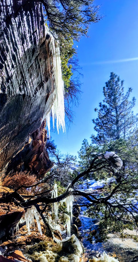 Looks like angels are landing on Angel’s Landing. The picture above is taken from the trail along the rim. How dangerous is it? Might depend upon whom you’re with… In 1997, James Bottarin was accused of pushing his wife, Patricia Bottarini, off the cliff to her death here. Choose your hiking (and life partners) carefully!
