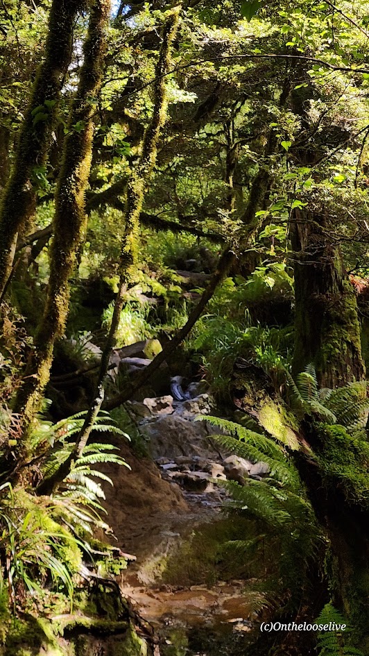 For the first half-mile, the path crosses a swing bridge over the Hollyford River and follows the magnificent, roaring Marian Creek, lulling you into a false sense of ease. The creek is dazzling, but dangerous too. (Sadly, in 2024, a 10-year-old girl slipped in and was washed away.)