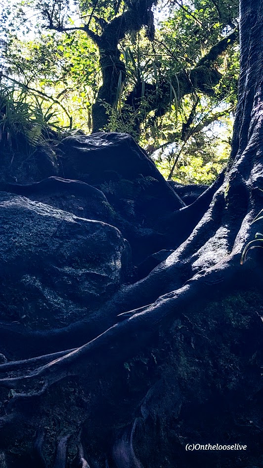 After the warning sign, you begin the slippery obstacle course, scrambling over wet roots, loose, mossy rock, and mud on a barely perceptible, steep trail. It is a painstaking, slow-motion journey, each step a careful calculation. I only have 1 photo of the trail because I needed to keep my hands free and my focus for fall / accident prevention. It’s the kind of hike best left to the nimble and sure-footed—reminiscent of some trails in the rainforests of Hawaii, but possibly more treacherous.