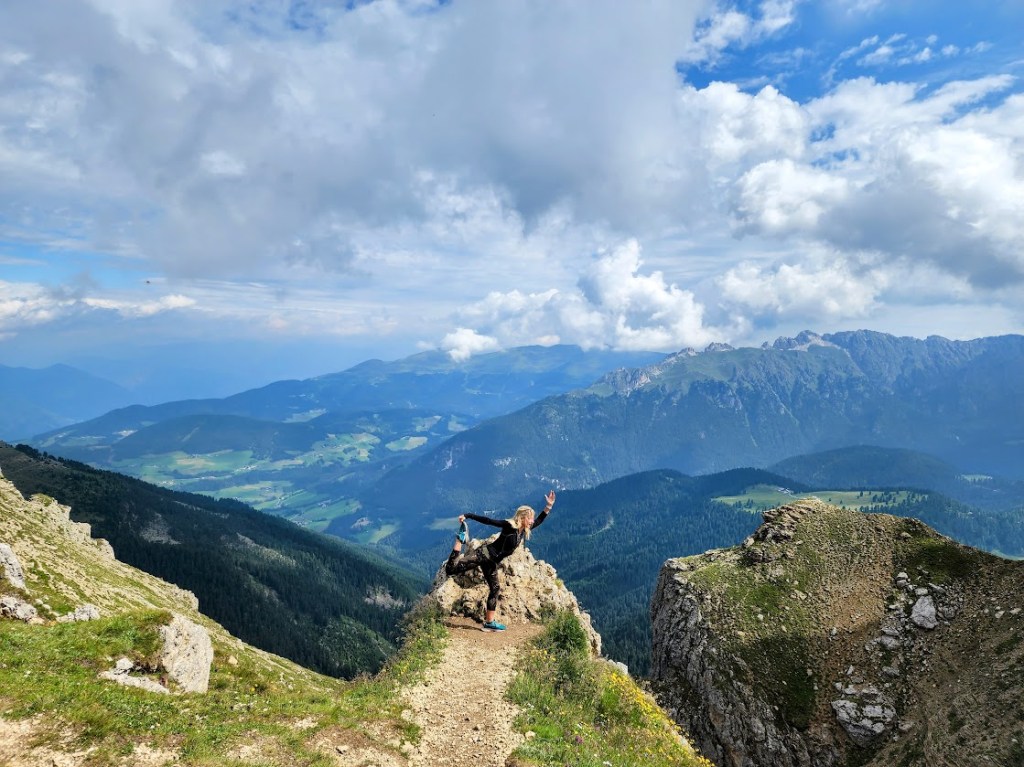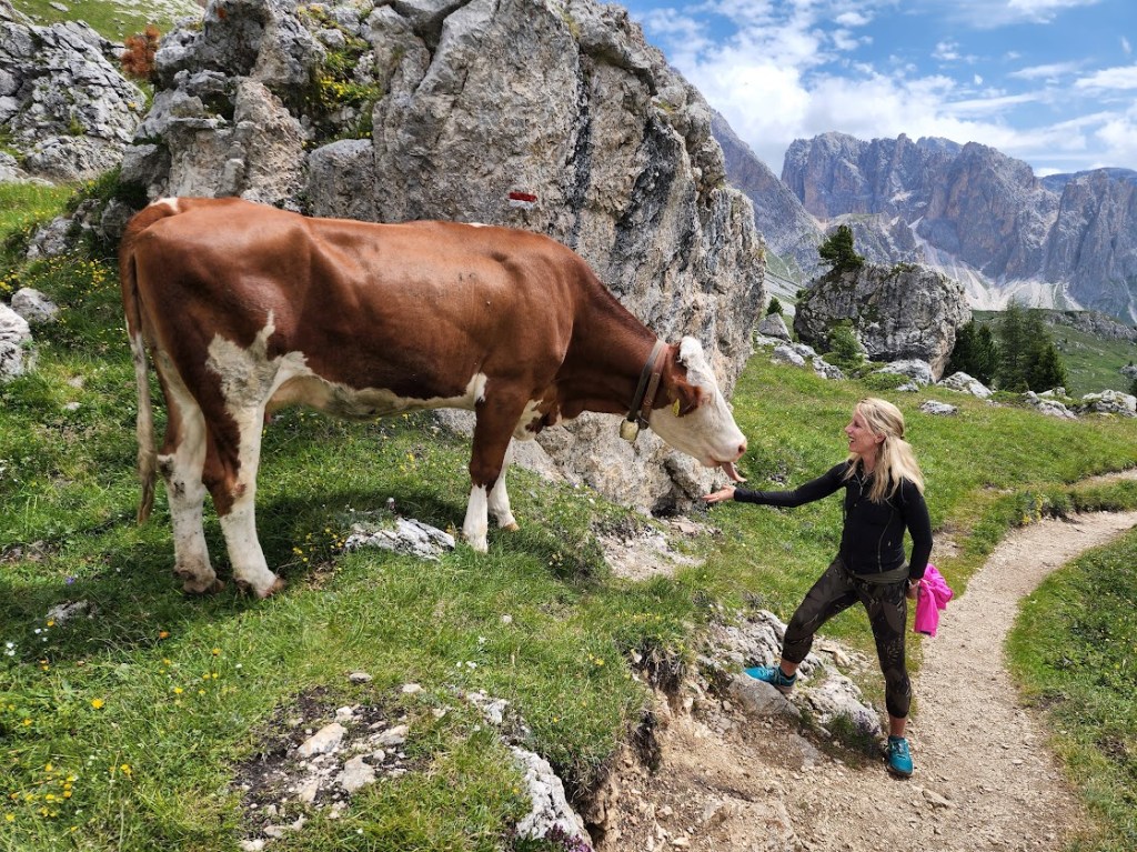 You can purchase 1-way tickets for ~$30 or roundtrip tickets if you don’t want to hike all the way down back to town. (If you are hiking for more than 1 day, consider purchasing the Gardena Card, which provides unlimited use of specific cable cars and gondolas.) Once at the top, you can choose your own adventure to fit your fitness level and interest. The main trails are well marked, and the terrain is relatively easy. A combination of altitude, incline, and duration can be challenging—know your limitations, but also know that there are plenty of opportunities to take breaks and refuel along the way. You MUST stop at the huts for the local experience and fresh-baked bread, homemade cheese, and savory sausages. Running shoes worked for me this time, but poles and hiking boots are always a good idea.