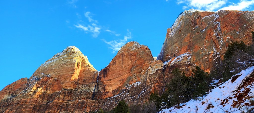 Turned into a human popsicle to get you this glimpse of Zion’s winter wonderland.
