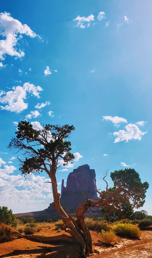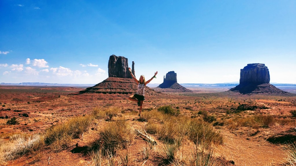 Getting there: From Mexican Hat, UT, drive south on HWY 163. You may notice the famous “Forest Gump Hill” where Forest Gump stopped running and decided to return home to Alabama and his love, Jenny. At mile 20, make a left onto Monument Valley Rd and follow it for another 3.3 miles to the Park Entry. The trailhead and sign in are at the far end of the Visitor Center parking lot towards the camping area.