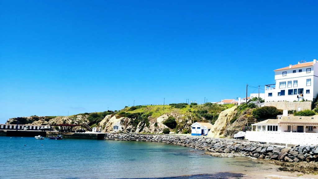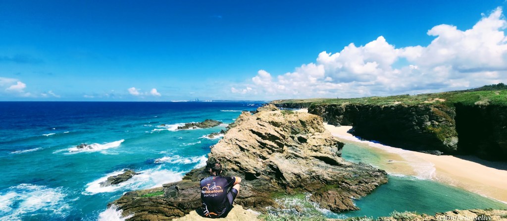 After pedaling through the charming village of Arrifana, we followed a pristine gravel path that wound through a quiet forest and eventually opened to the stunning coast. Our lunch spot awaited us on a seaside cliff, perched above the ruins of an ancient Islamic fishing village dating back to the 12th and 13th centuries.