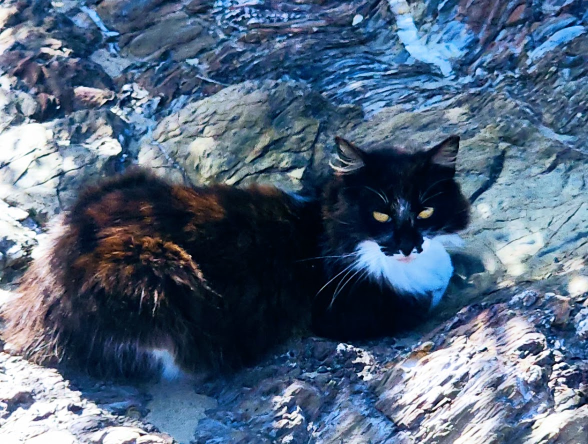 We went from that crazy cobblestone climb to cruising sweet, less-traveled, wide, paved roads down to the coast, stopping for coffee and snacks in a small surf village.