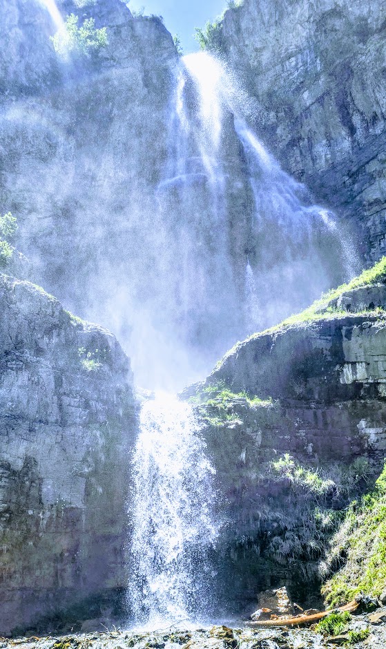 Just when I thought the scenery along Mirror Lake Highway couldn’t get better, I saw the sign for Provo River Falls and turned off (<15 minutes east of Kamas). This enchanting roadside waterfall has three tiers (upper, mid, and lower), lovely terraces, and multiple cascades. It’s a must-stop if you’re driving Highway 150. There’s a short paved path alongside the 3 waterfalls. The water temperature ranges from 35 to 55 degrees so the mist from the waterfall is wonderfully refreshing, especially on a hot day.
