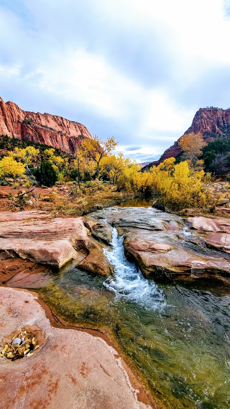 And then it gets even better. Zion vibes without the Zion crowds. After descending another 1k ft, you find yourself surrounded by dancing aspens and majestic red cliffs. This is where you’ll get your first glimpse of lovely La Verkin Creek. Oh, my—a perfect spot to pause and take in all the beauty. I’ll be back just for it. Fall is a splendid time for this hike, but I’m sure spring and early summer are delightful as well.