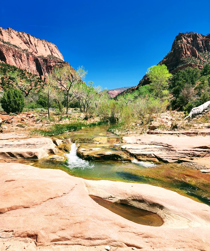 Notes: Sadly, toxic cyanobacteria have been detected in La Verkin Creek. No dogs are allowed in Zion Wilderness (a good thing as dogs have been known to die within minutes of exposure to the cyanobacteria). Bring plenty of water as you can not filter water with cyanobacteria.