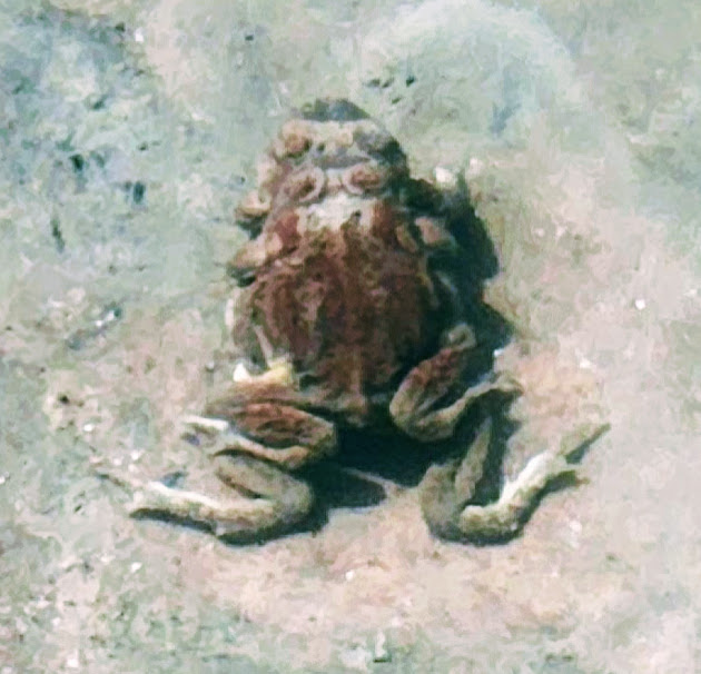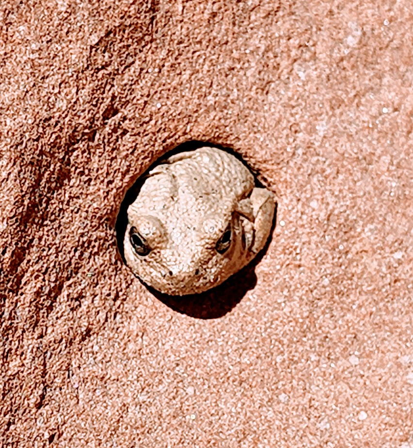Funny wildlife encounter story. Well, it’s not funny if you’re the frogs or me. While I was “Wim Hoffing” it in the creek (careful not to submerge my head), I sat on 2 frogs in the midst of a tryst. Unfortunately, it would be their final, though eternal, encounter. (Gives new meaning to “happy ending”, doesn’t it?) In the meantime, as I was exiting the delightful natural pool, I almost grabbed onto a snake. There’s bound to be one in paradise, right? Notes to self, look before sitting and before placing a handhold. The harmless snake was lying in wait for the plentiful frogs. Little did he know that I’d arranged a 2 for 1 for him. Back on shore, a frog eyed and ID’d me as the culprit.